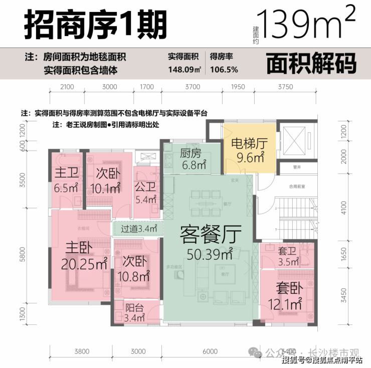 招商序2期的3个户型,123-138-155㎡,面积大小后期或有核增。这三个户型在结构上与一期的127-139-170㎡几乎是一样的,得房率相差也不大。