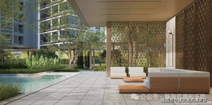 ②仪式感泗水归堂:镜面水庭设计,精选乔木铁冬青(旺宅的寓意)和镜面的水面结合,运用中国东方格局对称美学,借鉴皇家庭院的环抱对称,承载着‘聚水生财’的美好寓意