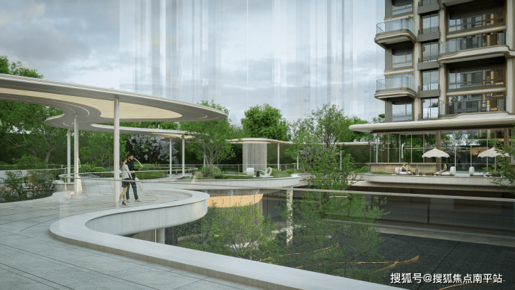 “航母”甲板下排布下沉式庭院会所、阳光地库、艺术车马厅、地下楼宇门厅和业主收纳万宝库,社区设备用房全挪地下室。“航母”甲板上,是全架空的泛会所大花园,回家就是大公园。社区外,西侧绿地退让20米、南侧退让30米做口袋运动休闲公园和花街,生活配套提前考虑到位。