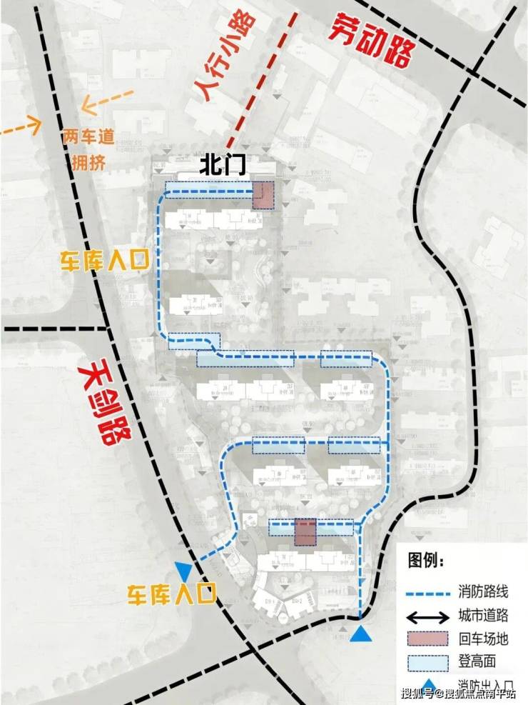 车行一般从北侧劳动路转天剑路进入小区,劳动路车流量大,早晚经常拥堵,天剑路由于道路狭窄,又是片区多个小区出入的唯一通道,从高德24小时路况预测看,一天大部分时间处于拥堵状况。