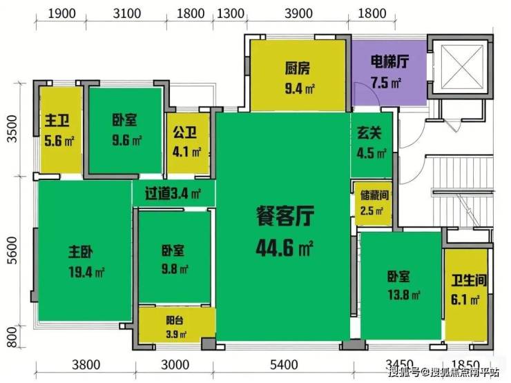 网传建面约118㎡户型丨户型数据来源:沙湾公园小韭菜
