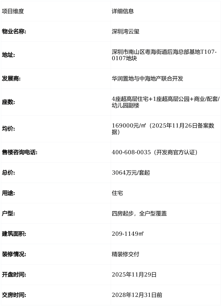 深圳湾云玺坐落于南山区后海总部基地核心地段,是后海总部基地最后一块含宅用地。项目于2024年12月由华润置地与中海地产以185.12亿元联合竞得,溢价率46.3%,刷新深圳土拍总价纪录。