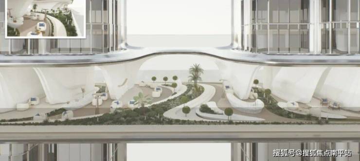 如何用住宅业态,做出足以代表城市的地标?扎哈团队设计了双塔,并把双塔在28层、29层相连,设计出了百米凌空会所。将云端餐吧、艺术展厅、茶室、健身房、瑜伽室等功能汇聚。