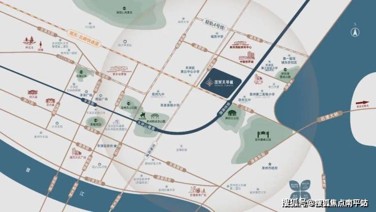 项目周边汇集交通、商业、医养、文教、生态等顶配资源, 安吉南路、老君大道、山海路、丰海路 等路网密织; 中骏世界城、复悦尚柏奥莱 双繁华商圈环伺;更有 泉州五中城东校区 (具体入学规则以官方发布为准)等头部教育资源,以及 泉州第一医院城东院区 、 海峡体育中心 等城市高量级配套, 大坪山公园、桃花山公园、山线绿道 等生态资源。