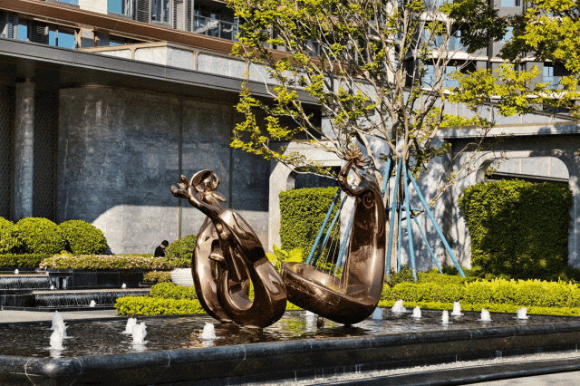 在后期维护费用更高的水景打造上,项目更是直接将精致艺术水系 贯穿整个园林,并点缀 多处下沉式会客厅 ,可随时于潺潺水声中静坐冥想、交谈,让度假式的松弛感与惬意感成为日常的标配。