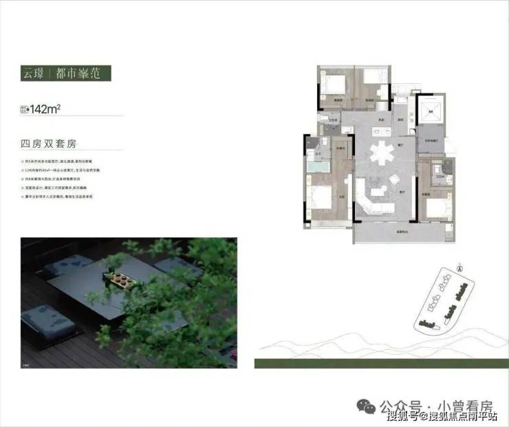 项目打造全南向板式,17层低密板式无遮挡 巨佳采光通风,专梯专户山居环幕MAX平层,视野开阔,揽一线云山美景,低17展低密居件环境非常舒适。