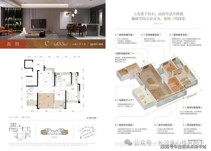 崇阳:133㎡四房两厅三卫精奢畅享家,朗阔格局三代同堂越级尊享