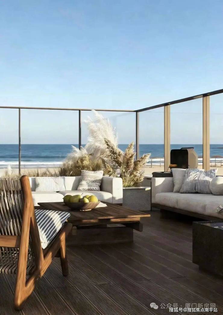 项目占据五缘湾外湾景观 C 位,直线约 38 米直达沙滩,下楼即木栈道、原生海岸,是真正意义上的 “推窗见海”。更难得的是,它采用东向瞰海设计 —— 在五缘湾,东向意味着无遮挡、无西晒,视野纵深感拉满。