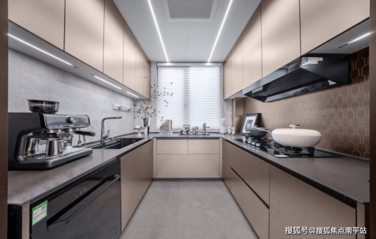 外立面擢取海洋生活美学配色,采用香槟金铝板线条+海浪灰金属涂料,搭配落地玻璃窗,局部配置隔声效果良好的三玻两腔夹胶中空玻璃,降低了周边的噪声影响。