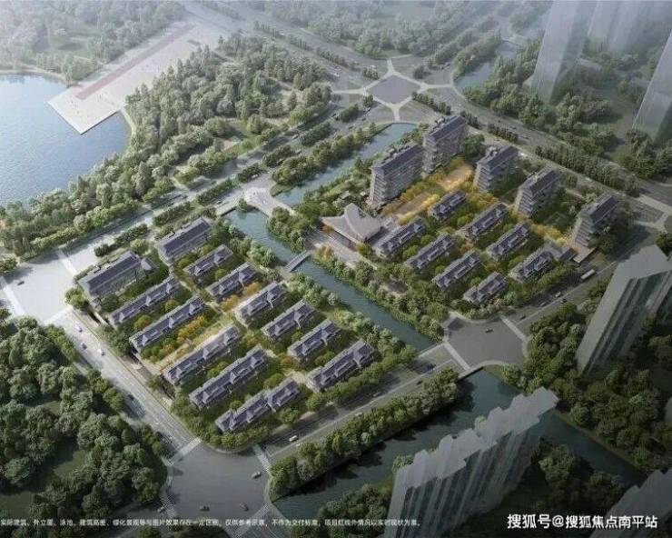 凤起潮鸣周边河网密布,江湖相连,自然景观极为优越。项目因地制宜,沿着自然水系形成 “一河双园”规划型制,将两幅地块紧密连接!