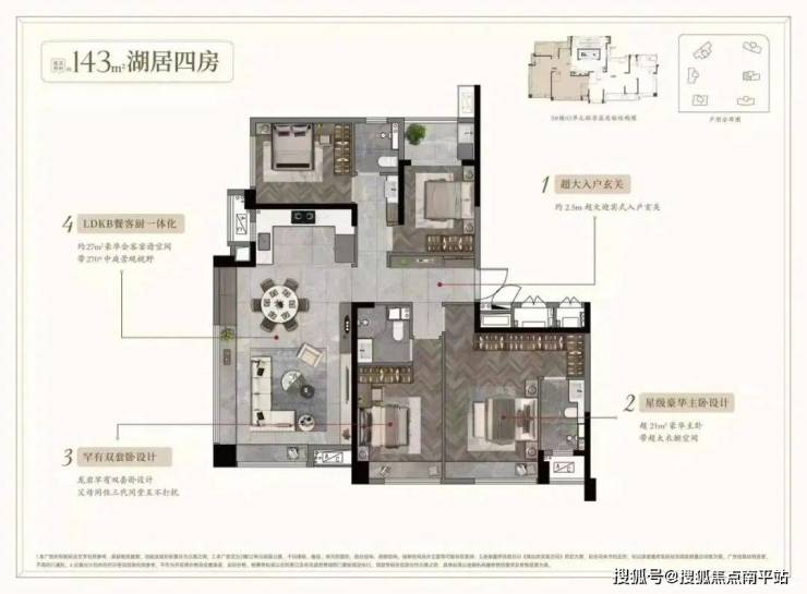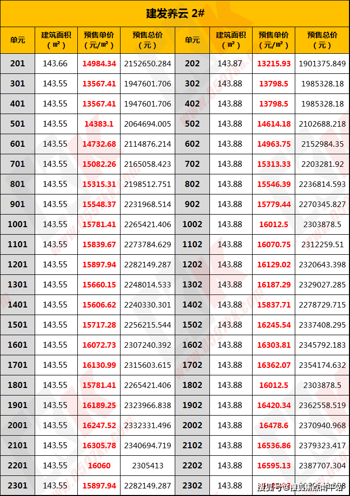 此次获批的2#户型为建面约143㎡湖居四房,层高22米。