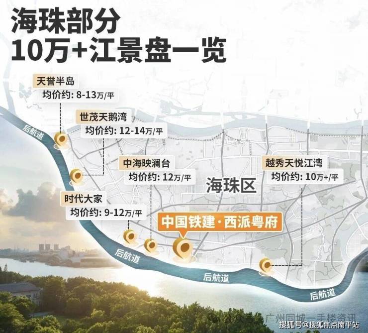 非一线/新一线城市不落,非核心地脉不立,非甄稀资源不享,非大师级匠艺精品不做,非高阶圈层不纳。摊开版图,海珠最贵的房子,天鹅湾、天誉半岛、映澜台、时代大家......均超过10万+,清一色沿着珠江后航道分布。