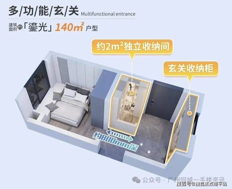 最特别的是玄关,做了“大肚”收纳,尤其「鎏光」、「游目」,除玄关鞋柜,单独有一个近2㎡,约800mm深的收纳间。