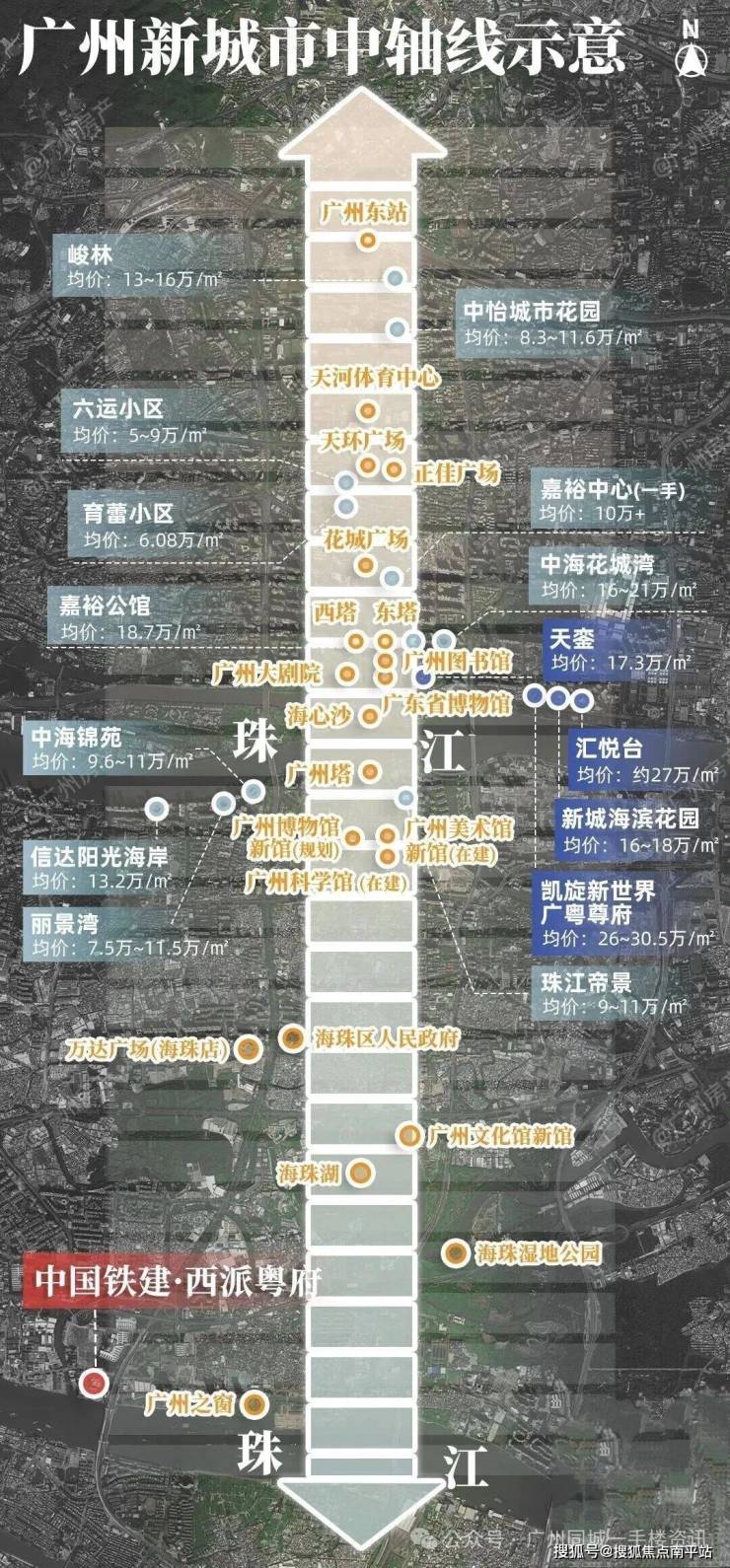 了解中国铁建·西派粤府前,我们需要了解它的占位——广州新中轴南延最后一公里,与珠江交汇的地方。