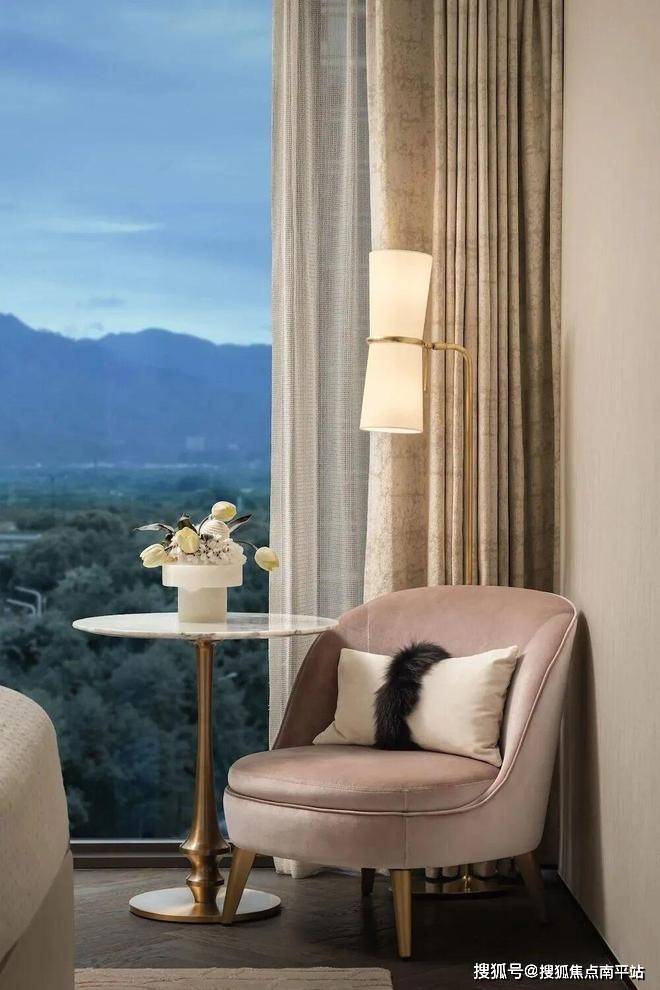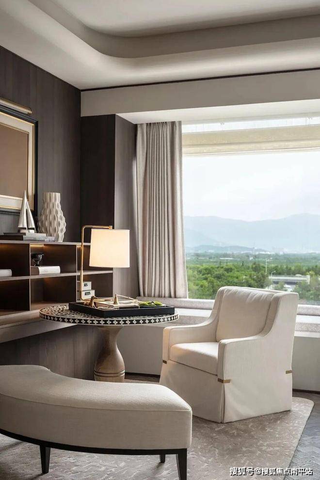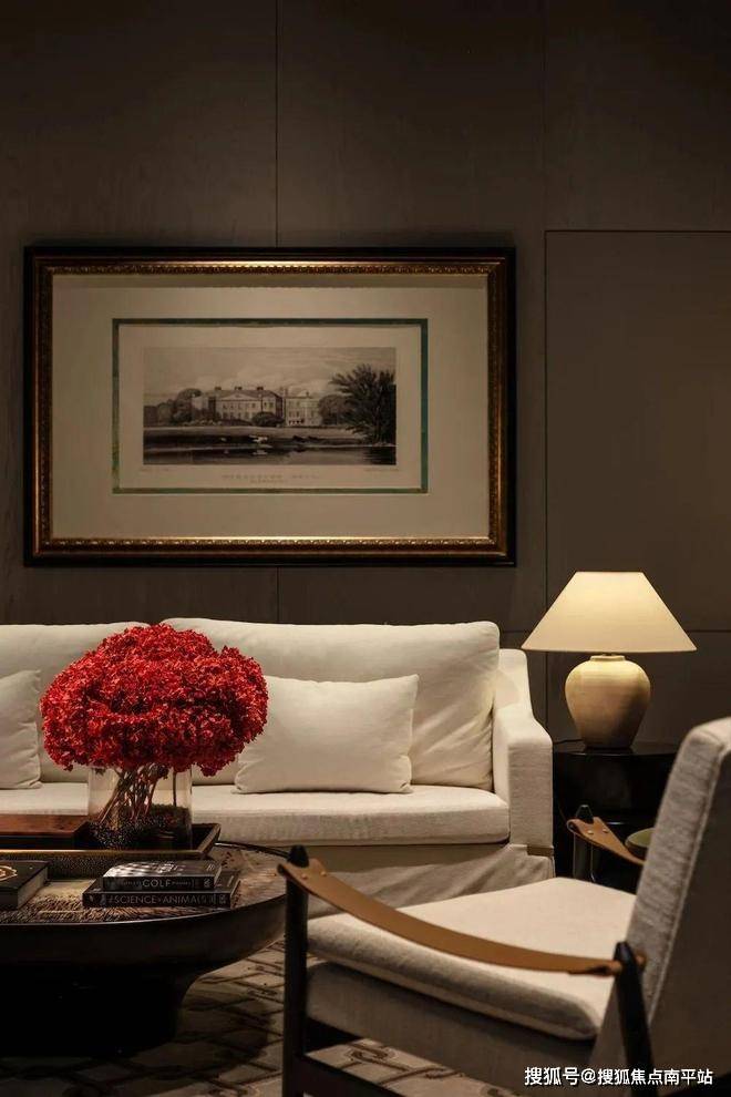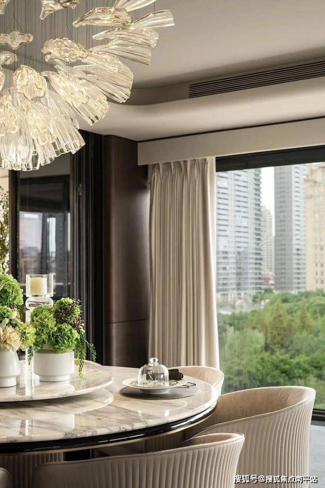 另一隅会客区则将视野投向了庭院与山野的景致,设计师将鲜活的绿植元素悄然注入空间,又巧妙糅合进古典主义的美学表达。