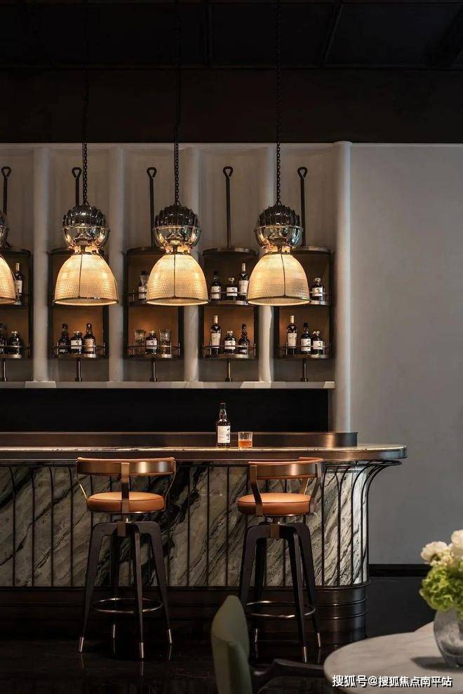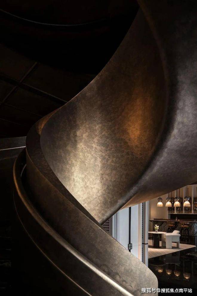 水磨石、黄铜与平滑岩板形成鲜明的有机对比,生动的纹理奠定了空间的多元化基调。各类材质实现平滑融合而非机械组合,几何结构的相互填补保障了构图和谐,同时材质颗粒度的对比效果也始终存在。