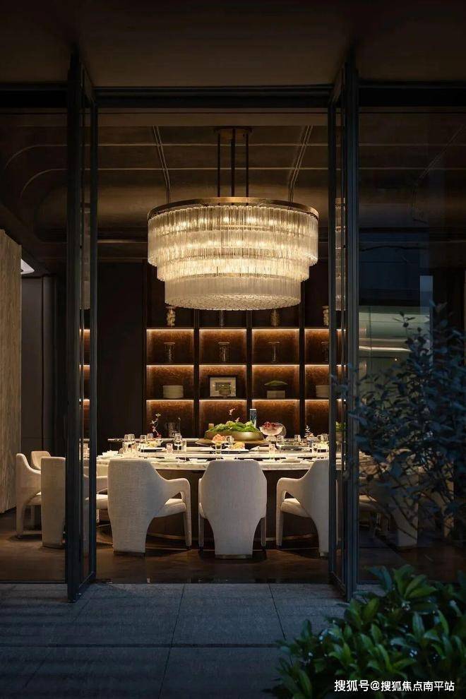 宴会厅朝外侧舒展敞开,与户外庭院连成一条通透的观景通路。丰盈而对称的空间构图,尽显宴饮宾客的热络与真挚;满溢的情感表达,与庭院的自然风光遥遥呼应。