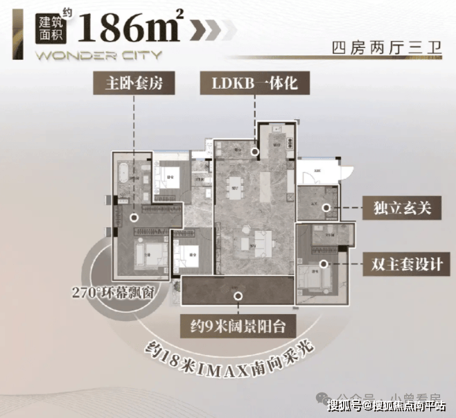 186㎡四室两厅两卫总价约 948.6 万元,景观视野更为开阔。