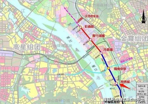 附近有地铁1号线北延湘绣城站 (规划中),地铁9号线 (规划中)也将途经周边,直线距离约300米。地铁约2KM,比较远。开车到河西和市中心都比较方便。
