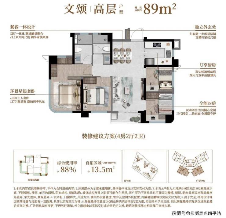 2. 户型得房率确实高,89㎡起,做四房是真能用