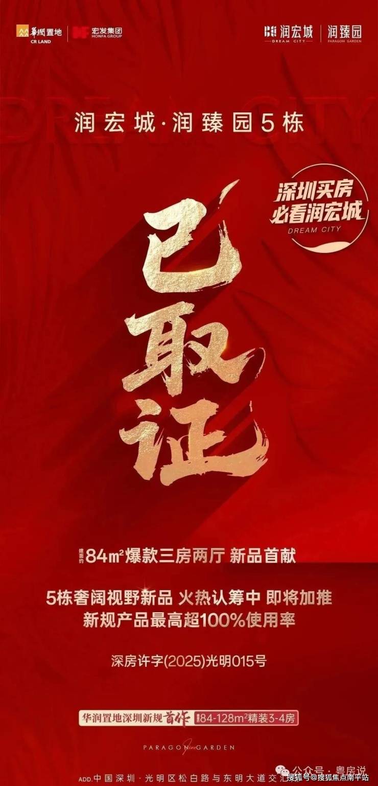 华润置地深圳新规首作,实景示范区已开放,光明冠军红盘,新品5栋加推!