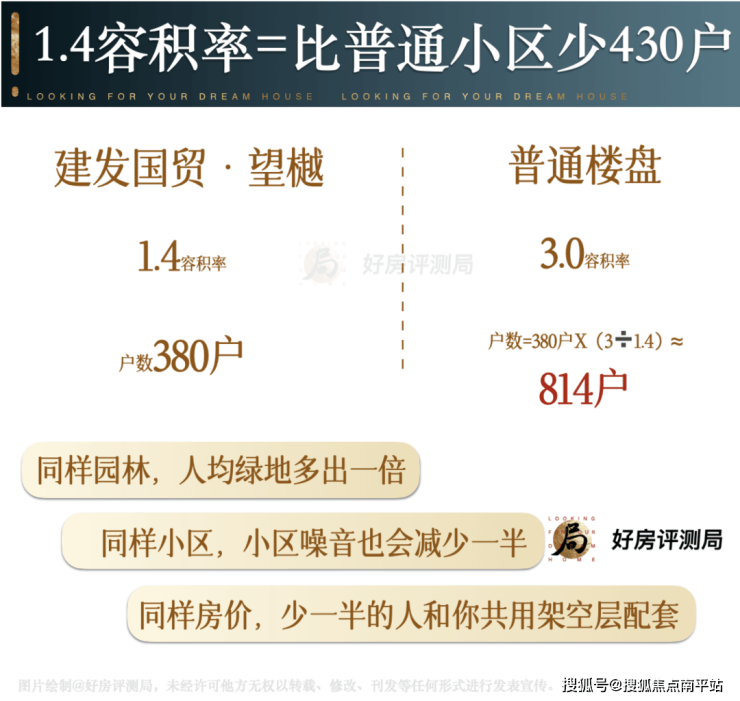低密,不只是数字上,更是占有更多绿化资源、架空层配套、宁静资源,如望樾整整凭借1.4容积率,整整减少了小区一倍户数。
