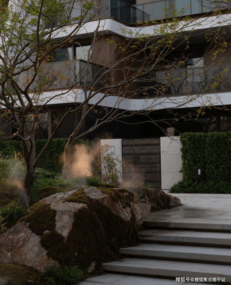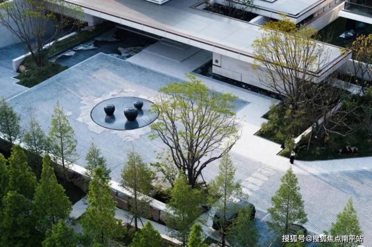 和园结合南通地域特质和人文精神,将安缦式「自然隐奢」的产品哲学搬进了社区。约5000㎡开放式前场景观,是和园的第一重意境表达。