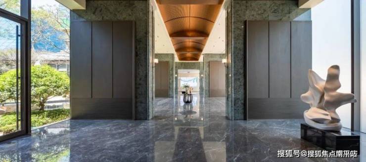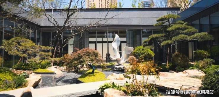 石谷流云的下沉庭院,纯铜锻造的玉兰花主题雕塑映入眼帘,成为整个庭院的视觉中心。