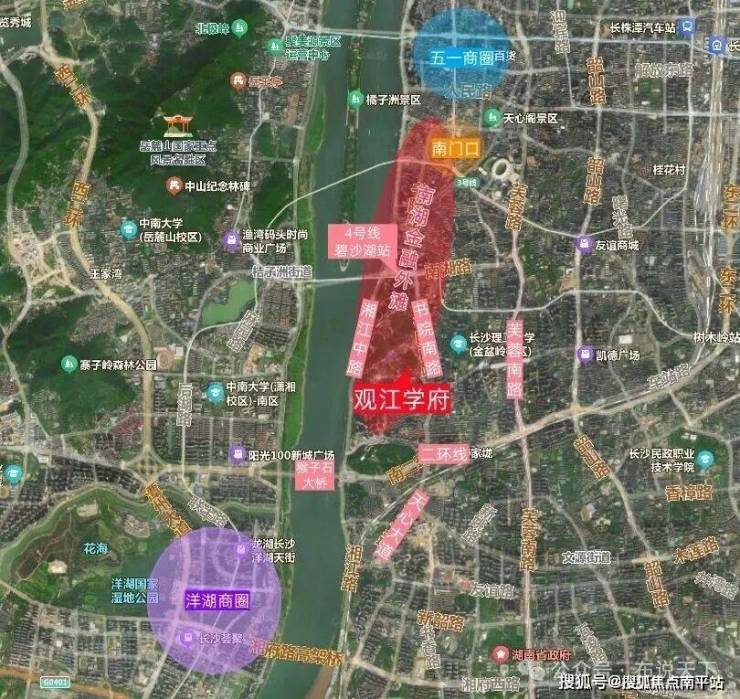 从地段来看,观江学府位于天心区南湖新城核心范围,具体在书院南路与南沿路交汇处。
