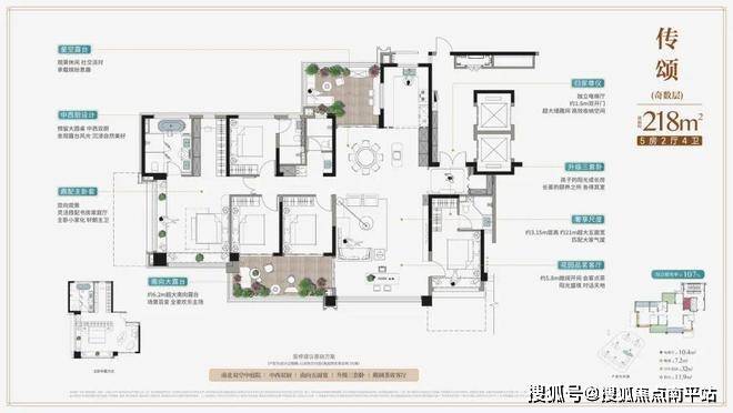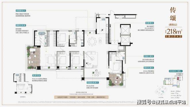 建面约218㎡户型,独立私属电梯厅+约1.6米入户双开门设计,彰显大宅风范。约5.8米轩敞会客厅融合雅致茶室,南北双露台加持,以大面宽、大视野、大场景,满足高阶人士更高层次的情感与社交需求;高配五房规划,奢享三套卧,尺度尽显尊崇。