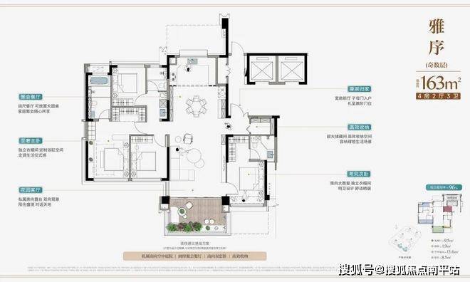 在建面约163㎡空间里,类独梯独户的设计、入户带独立储藏间、LDKB一体化设计、私享空中露台、星级主卧套房…这些高改住宅该有的配置都涵盖。阔尺四房配置,无论是大人、小孩还是老人,在这个家里,每个成员都被悉心照顾。