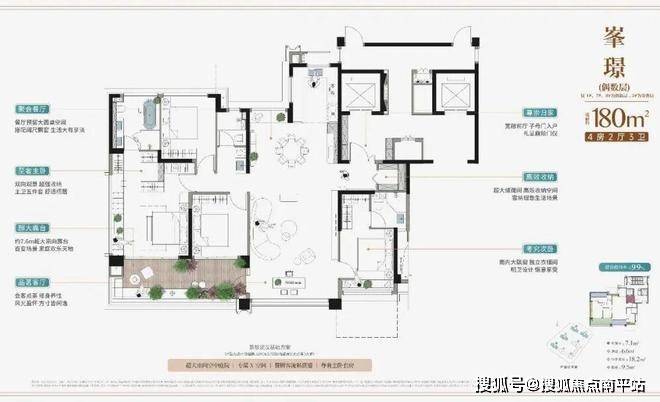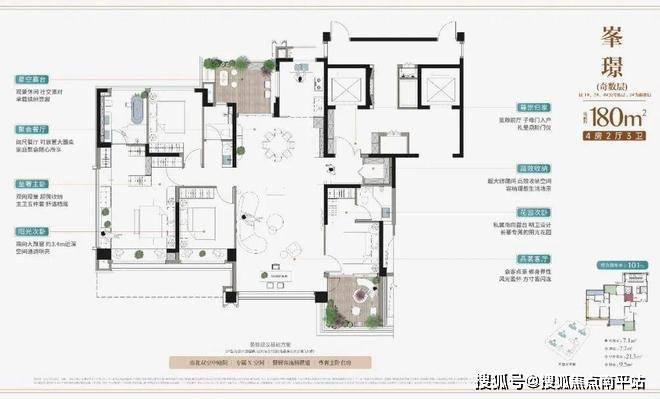 建面约180㎡全空间四房两厅三卫,空间感可媲美市面约200㎡大平层。