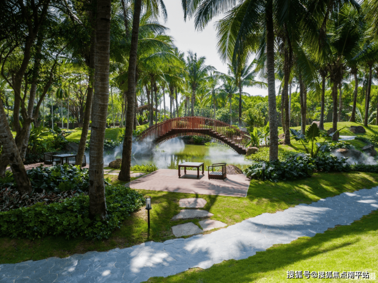 园林设计以杭州法云安缦为蓝本,师法自然、禅意幽远。悉心挑选 40 种热带特色植被,葱郁繁茂、四季繁花。更珍视原地块 4 棵百年古树,以此为核心景观节点,古木参天、岁月沉淀,与新植交相辉映,构筑宁静深邃、自然野趣的园林画卷,让每一步归家皆为穿越诗意秘境的悠然旅程。