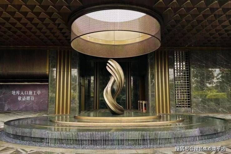 60米阔尺门庭,以温德姆灰石材与金属饰线,复刻“泉石共生”的城市肌理。两侧涌泉依次漫流,呼应“家家泉水”的盛景;中心椭圆叠级水景,复刻趵突泉“跳珠溅雪”的意境;普拉达绿奢石景墙,宛如一枚镶嵌于入口的“泉城翡翠”,自此,穿越风景即是归家的仪式。