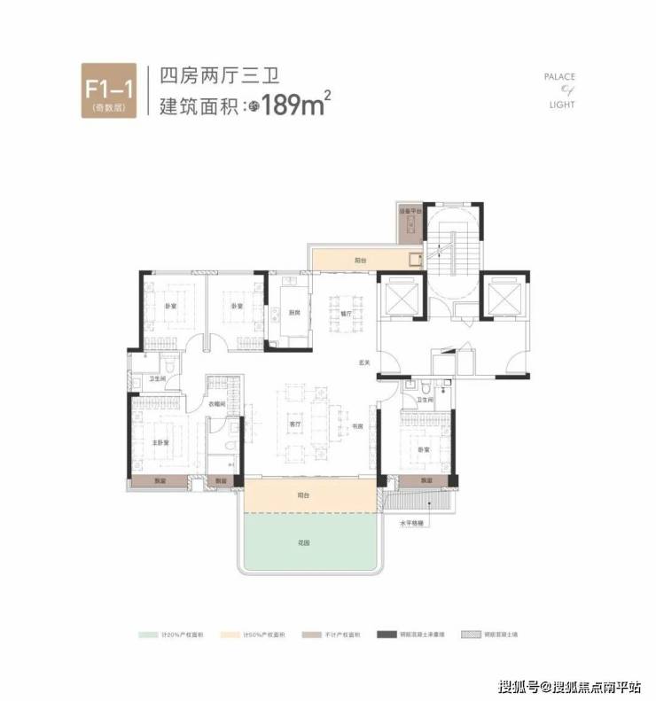 建面约169-189㎡产品一梯一户设计,四开间朝南,LDKG客餐厅一体化设计,宽敞的花园庭院,满足业主N种生活想象,实现N种生活方式。