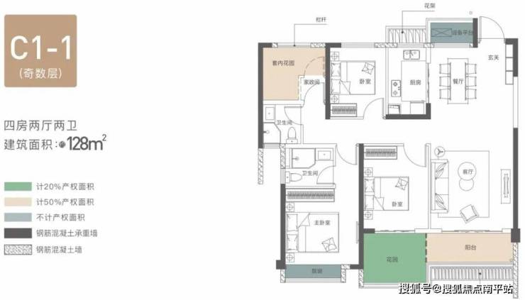建面约117㎡-143㎡产品,均做到了“ 3+1”的四房两厅两卫的升级设计,四开间朝南,通风采光好,比市场上同类型户型更具有竞争力。更值得一提的是, 上述户型还赠送了一个空中花园(赠送面积达80%),南向大阳台连通花园,可以在此品茶、看书、养花养草等……高得房率、高实用、高颜值,是普通住宅不可比拟的。