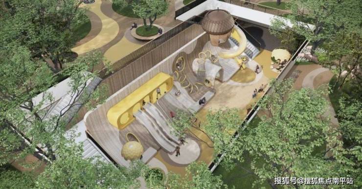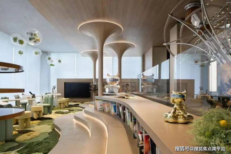 1、超大园林+下沉庭院: 搞了13000㎡的绿化展示区!最特别的是做了 三个下沉式庭院 ,把叠水景观会客区、松果主题儿童乐园、樱花林地这些场景连在一起,像个小公园,饭后散步遛娃有地方了。