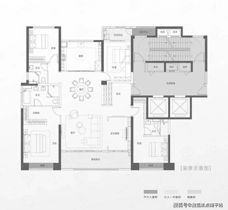 目前长沙大平层迭代至3.0了,这应该算2.5代吧。第一代就是悦府大平层开山之作,第二代就是招商双境,在品质上开始有些追求但不够,第三代就是要补足明显拉胯的东西,比如外立面、地库材质;户型层高;架空层设置等。