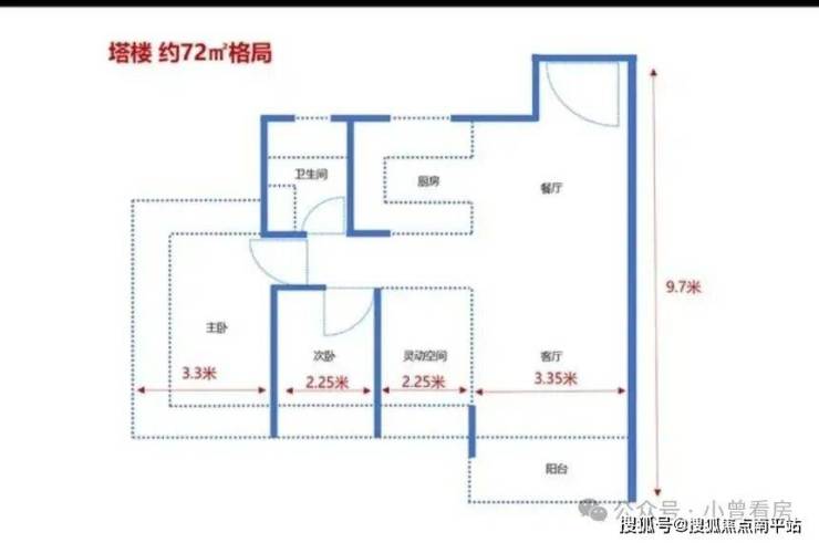 72 平方米三房为塔楼户型,2 梯 5 户设计,通过高使用率规划让空间紧凑实用,每个功能区都能充分利用,总价约 360 万起,适合小家庭入手。