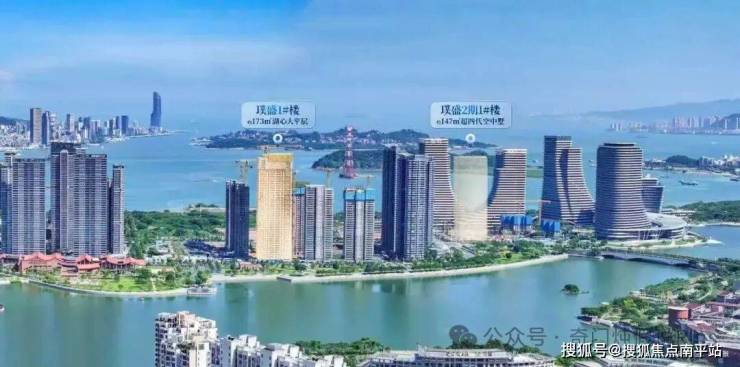 璞盛1#央座作为45层的超高层建筑,它精准落位蔡尖尾山-区政府-海沧湖-海沧湾的城市中轴C位,直面海沧湖头排景致。
