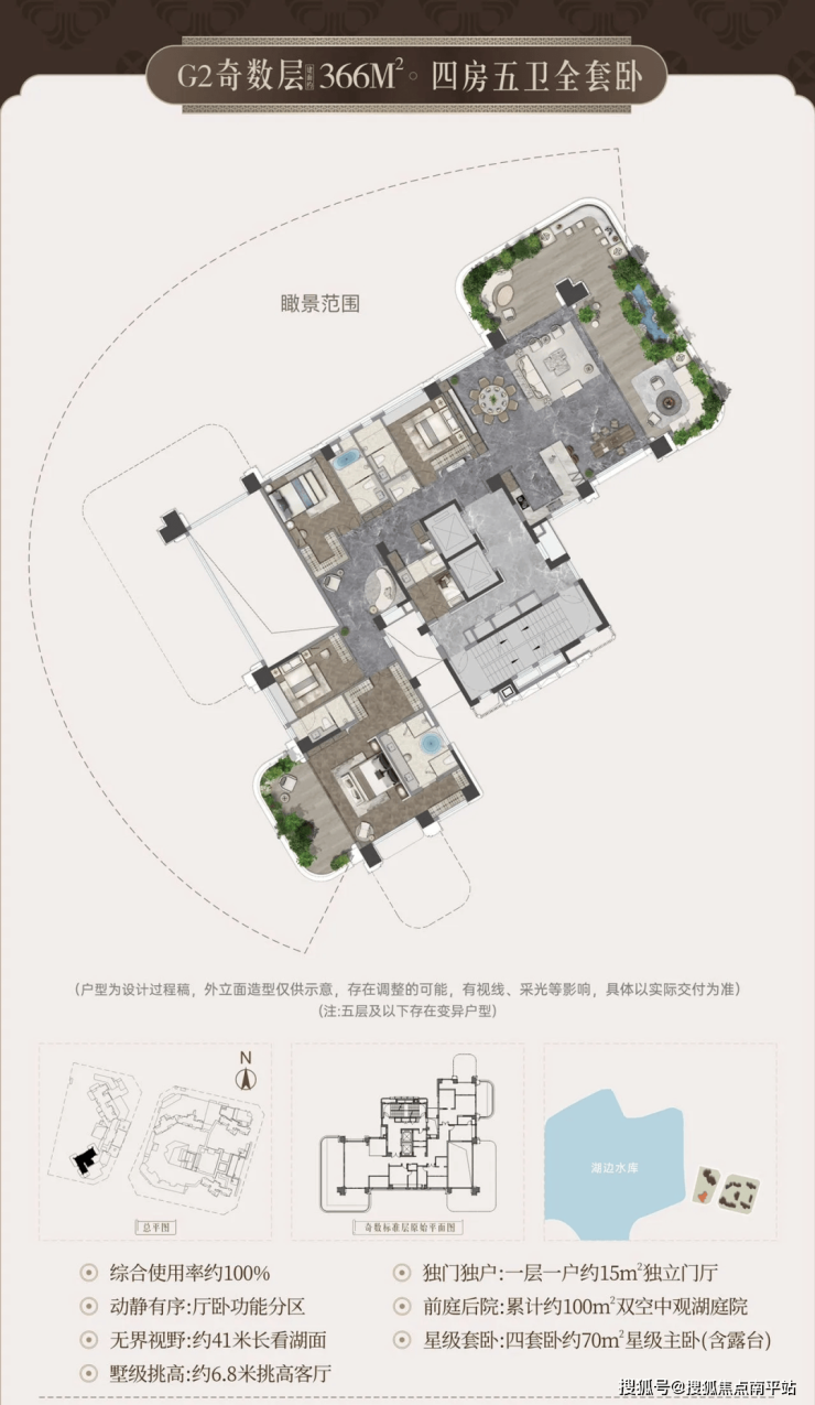 建面约366㎡「家族图腾」五房版户型,主卧套间与独立家政套间形成双流线,让主人与生活服务各自找到归栖之所。同时拥有双客厅,对于喜欢独处的伙伴很友好;主卧床头直面空中院子,院子上种上女主人喜欢的花草,惬意享受诗和远方的生活。四房版本,空间更大,房间舒适度更高,尤其是主卧和次主卧分居两头,更安静,同时可满足自己和长辈更安静的居住需求。