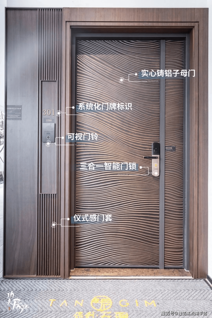 入户大门,为品质铸铝子母门设计,门套采用酒店仪式感造型,顶部设标识灯,特制系统化门牌,彰显主人归家尊崇。室内系统门窗,选用水密性、气密性、抗风压、隔音性能均比普通门窗高三级的双层中空玻璃,隔绝室外噪音约25-30分贝,隔绝紫外线的同时更可保温,夏季白天室内温度比室外降低5°C左右。