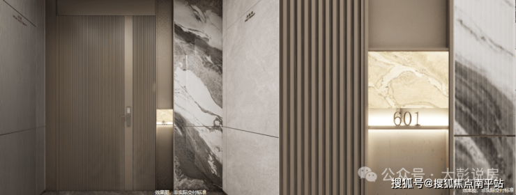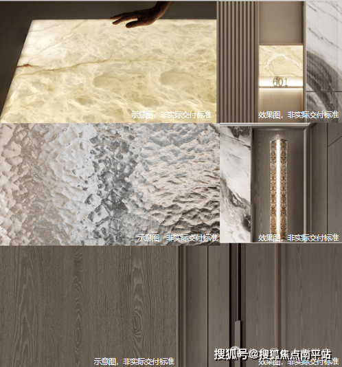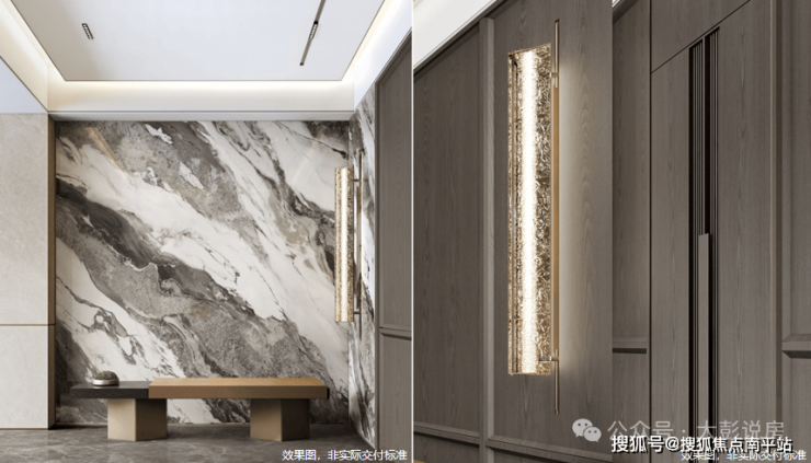 公共区域:以透光云石、水纹玻璃、精选木纹搭配,构建独特东方审美