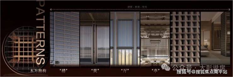 提取东方榫卯结构为原型,打造立面粉黛色彩构成,以抽象叠落顶部造型,结合大面积玻璃幕墙,形成光幕全屏效果