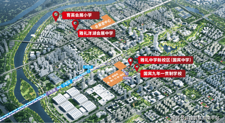 紧邻总长约3.6公里的“会展超级中央商务轴”,中轴商业商务体量超300万平;