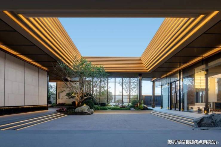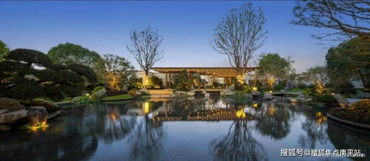 超500㎡中央水景与叠石飞瀑相映成趣,百年名木与原生植被错落掩映,仿佛将江南园林融入日常。