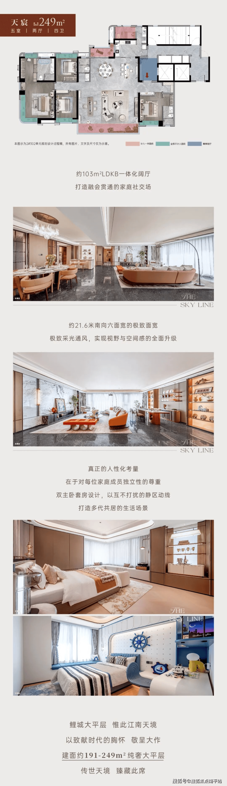 江南天境仅规划5栋建筑,打造206席建面约191-249㎡纯奢大平层,从根源上保证了社区高圈层的纯粹性。在这里,邻里拥有相似的生活追求与消费理念,日常社交更显舒适、同频;同时,纯粹的规划也让社区资源得以集中分配,无论是园林空间、休闲设施还是物业服务,都能更精准地匹配层峰人群需求。