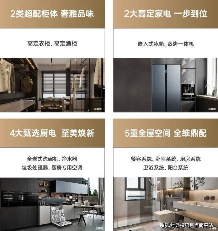 [高标奢装 全系超越]甄选国际精装品牌,威法高定(衣柜、橱柜)、博世(蒸烤箱、洗碗机、嵌入式冰箱)、瑞士恩仕NOVIA浴缸、汉斯格雅恒温淋浴系统、德国唯宝面盆、华为全屋智能系统,以及ALUK阿鲁克系统门窗、加厚式LOW-E中空玻璃等,以“市场升维”的态度,敬畏、引领、创新。