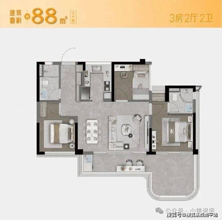 主打 88-240㎡三至五房全维户型,刚需、改善、顶奢需求全满足,得房率超 100%,空间性价比直接封神!88㎡三房做到 5.6 米大横厅,全赠送超大空中露台,刚需优选超划算;115㎡3+1 房带专属无人机停机坪,10 米空中花园阳台,成长型家庭适配度拉满;125㎡四房南北双阳台,收纳空间提升 40%,完美适配三代同堂;142㎡四房双台盆主卧 + LDKG 一体化设计,通透感拉满;240㎡顶奢五房坐拥 9 米挑高空中墅院,270° 环幕山海景观,四套房设计尽显塔尖格调。所有户型均为全南布局,部分层高 3.2 米超普通住宅,还赠送 18-30㎡空中花园,把花园搬上空中小家!