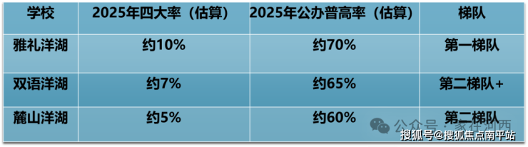 雅礼洋湖:四大率约10%,公办普高率约70%,已经晋级第一梯队。